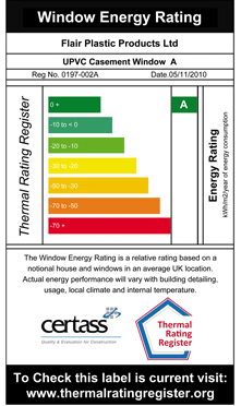 Window Energy Ratings use a consumer-friendly traffic-light style A-E ratings guide similar to that used on ‘white’ goods (such as fridges, freezers, washing machines etc…). This ratings label can be used by you to make more informed choices about the energy efficiency of the windows you are looking to purchase.