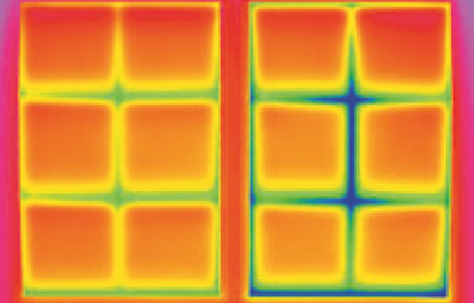 Warmer edges with SWISSPACER, cold areas are shown as blue in this thermal image.